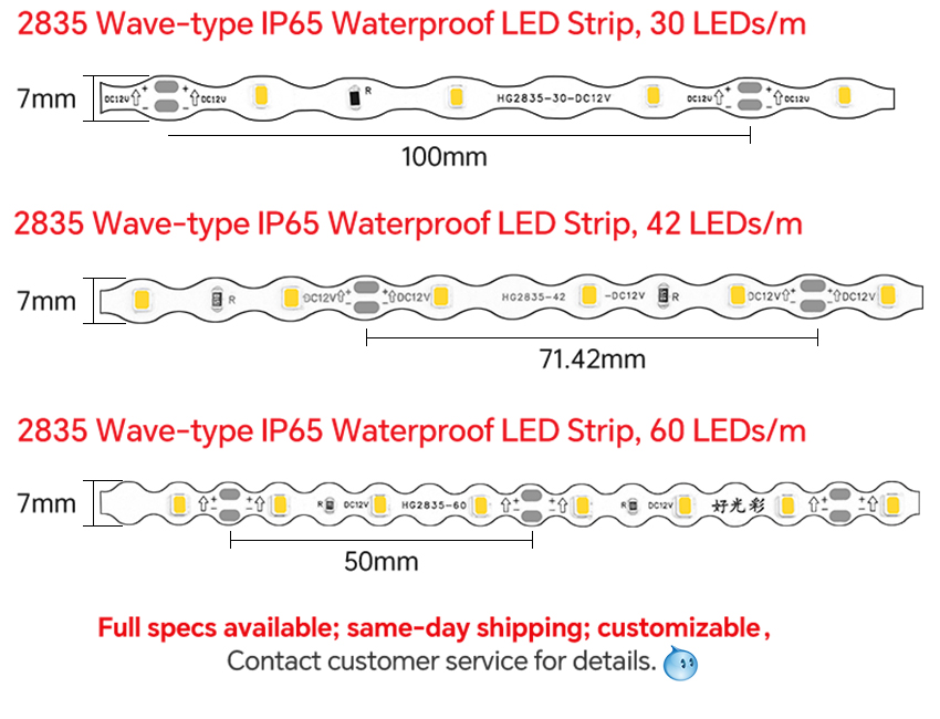 | Product specification | 12v bare board /120 lamps,24v bare board /120 lamps | Series | 2835 straight 8MM rainproof soft light strip |