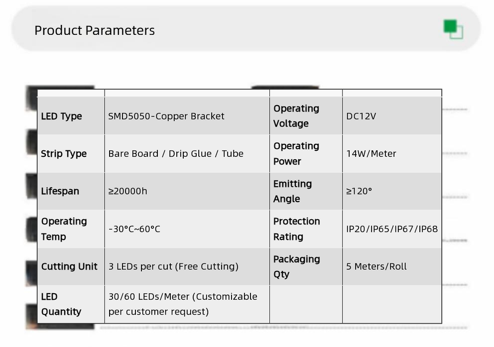 | LED lamp bead model | 5050 | The number of LED beads | 30/60/meter customizable |
